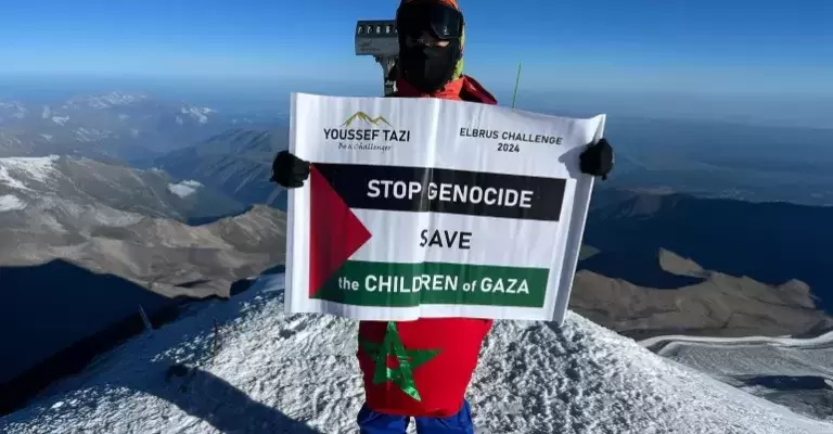 نجح الطفل المغربي يوسف التازي (13 سنة) في تسلق قمة جبل إلبروس في روسيا، أعلى قمة بالقارة الأوروبية، بارتفاع 5642 مترا، مهديا هذا الإنجاز إلى أطفال قطاع غزة الذين يتعرضون لحرب إسرائيلية مدمرة. وقال عمر