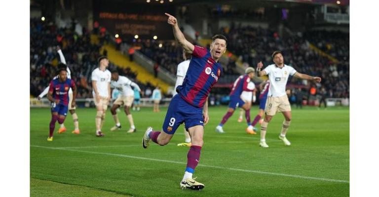 قاد المهاجم الدولي البولندي روبرت ليفاندوفسكي فريقه برشلونة إلى استعادة نغمة الانتصارات والمركز الثاني بتسجيله ثلاثية "هاتريك" في مرمى ضيفه فالنسيا المنقوص 4-2 الاثنين في ختام الجولة الـ33 للدوري