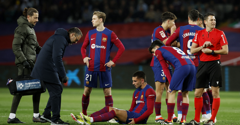 أعلن نادي برشلونة اليوم الأربعاء إصابة لاعبه فيران توريس في فخذه اليمنى دون تحديد مدة غيابه. وقال نادي برشلونة بخصوص إصابة توريس، الذي غادر أرضية الملعب عند الدقيقة السابعة، " أظهرت الفحوصات التي