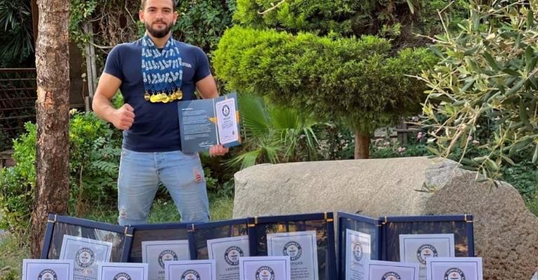 محمد فيضو (٢٢ عاماً) وهو إبن محافظة اللاذقية السورية، والذي يدرس إختصاص التربية الرياضية في جامعة تشرين، هو بطل الجمهورية السورية برياضة التايكوندو وحاصل على ٢٣ رقماً قياسياً عالمياً في موسوعة غينيس