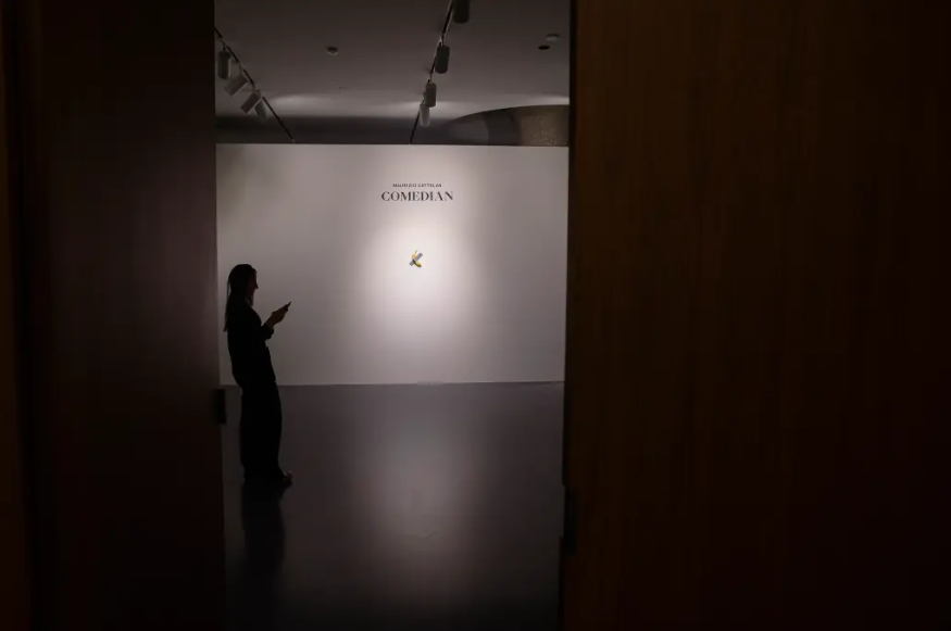 وفي المقابل، أبدى كاتيلان استغرابه فقط لأن الزائر أكل الموزة وترك الشريط والقشرة كما هما، في رسالة ساخرة تعبّر عن فكرة العمل الأصلي الذي يعكس هوس السوق بأي شيء قابل للبيع.