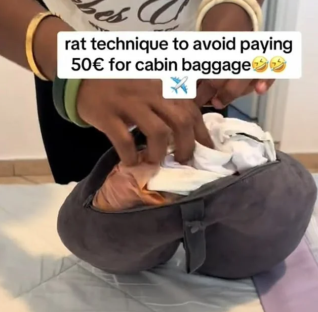 أشعلت مسافرة تُدعى نينا إدوين جدلاً واسعاً على منصات التواصل الاجتماعي، بعد أن شاركت حيلة ذكية تمكّنت من خلالها من تفادي دفع رسوم أمتعة المقصورة على متن إحدى رحلات الطيران، مستخدمة وسادة رقبة فارغة فقط.