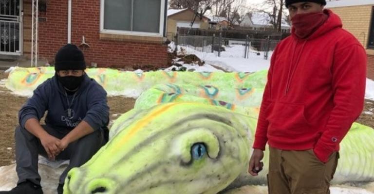 فيما بدا أنها هواية تجمع أفراد عائلة أمريكية، كلما هطل الثلج أمام منزلها في ولاية كولورادو، تمكنت العائلة بعد تفريغ نفسها 10 ساعات من صناعة مجسم ضخم لثعبان من الثلج. وهذه ليست المرة الأولى التي تبدع