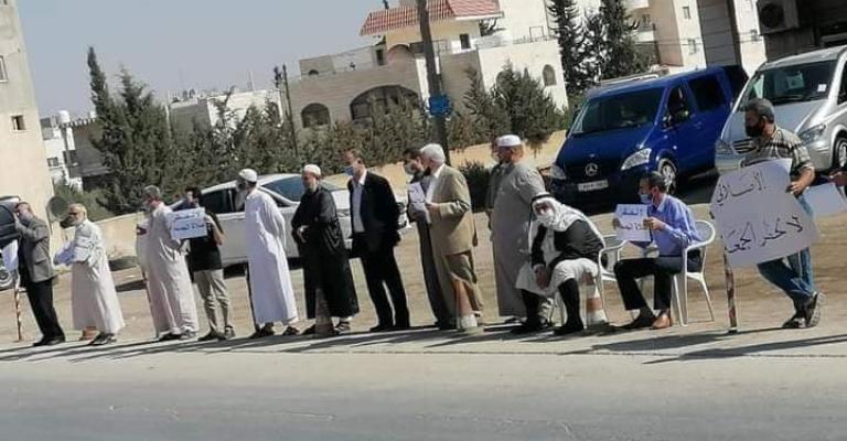 اعتصم عدد من أبناء لواء الرمثا أمام المتصرفية ضد قرار حظر يوم الجمعة وتعطيل صلاة الجمعة.