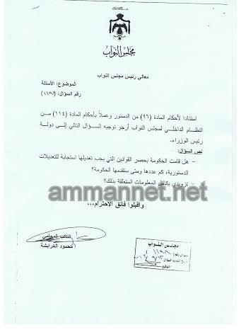 أكد النائب محمود الخرابشة أن عدد القوانين التي يجب أن تتواءم مع التعديلات الدستورية تزيد عن 20 قانونا؛ خلافاً لما أوردته الحكومة في جوابه على سؤال نيابي تقدم به سابقا.