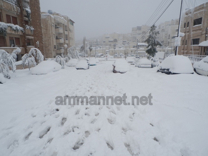 استمر تساقط الثلوج على المملكة مساء الجمعة وصباح السبت مما أدى الى انغلاق شوارع العاصمة عمان.