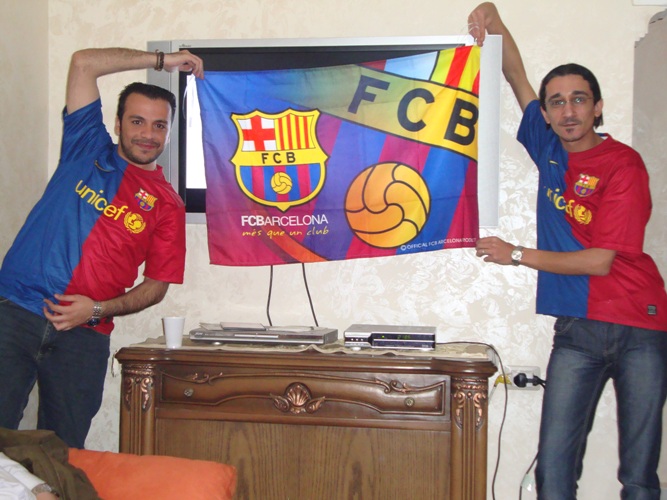 و وزع انصار الفريق الحلويات فرحا بنصر الفريق الكتلوني وسط خيبة امل اصابة انصار فريق الريال الذي هزم بين ارضه وجمهوره.