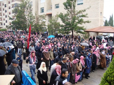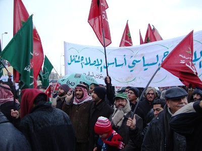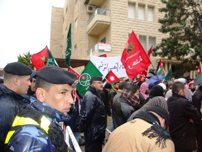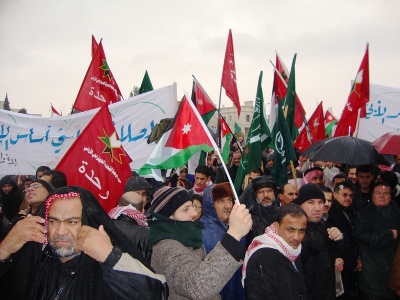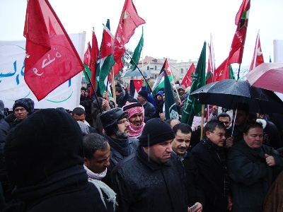 انطلقت عقب صلاة الجمعة مسيرة حاشدة دعا لها حزبي العمل الاسلامي والوحدة الشعبية من مسجد صلاح الدين باتجاه رئاسة الوزراء على الدوار الرابع