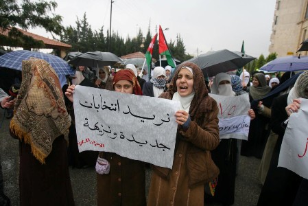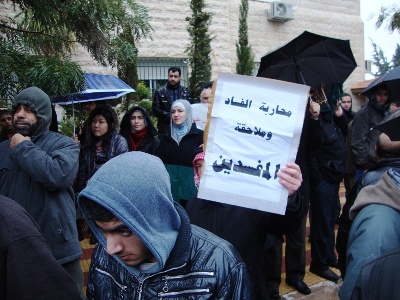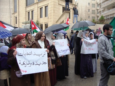 وحمل المشاركون بالمسيرة العديد من اليافطات منها "إلغاء قانون الانتخاب الحالي"،" محاربة الفساد والمفسدين".