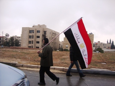 وتوجه المشاركون من أمام رئاسة الوزراء إلى مبنى السفارة المصرية القريبة للتعبير عن تضامنهم مع الثورة المصرية وتحية الشعب المصري.