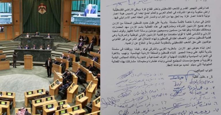 قرر نواب أردنيون القيام بـ”سلسلة بشرية” مليونية تضامنية (يحدد موعدها لاحقا) على امتداد الحدود الأردنية الفلسطينية، من شمالي المملكة (طبريا) إلى أقصى الجنوب (مدينة العقبة)، تنديدا بالعداون الإسرائيلي