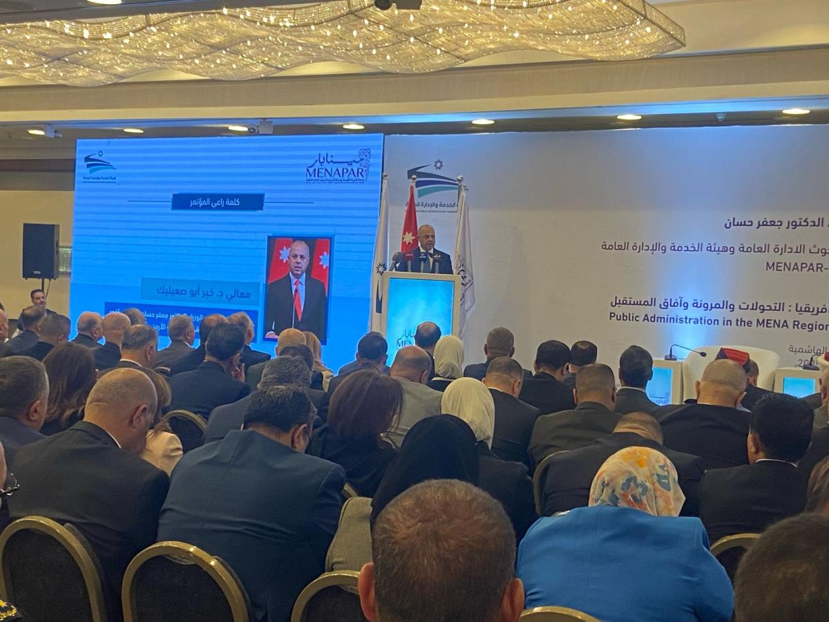 عقدت شبكة الشرق الأوسط وشمال إفريقيا لبحوث الإدارة العامة (مينابار)، بالتعاون مع هيئة الخدمة والإدارة العامة، الاثنين، الجلسة الوزارية ضمن أعمال مؤتمرها التاسع، تحت عنوان "حكومات عربية أكثر إنتاجية وابتكاراً".