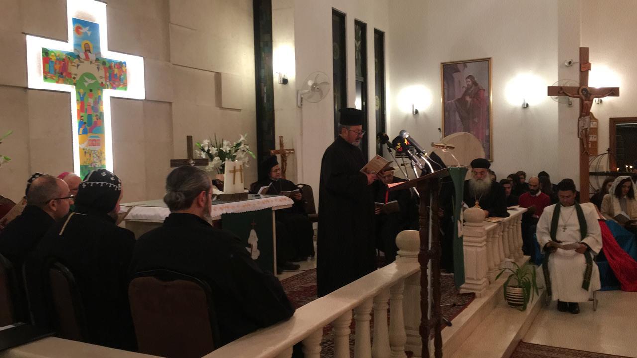 ورحب راعي الكنيسة القس سامر عازر، بالحضور باسم مجلس الرعية وأبنائها، وعبر عن غبطته بالتئام جموع المصلين من مختلف الكنائس من أجل غاية نبيلة وهي الوحدة والصلاة متحدين من أجل سلام العالم وأمن الوطن وأبنائه.