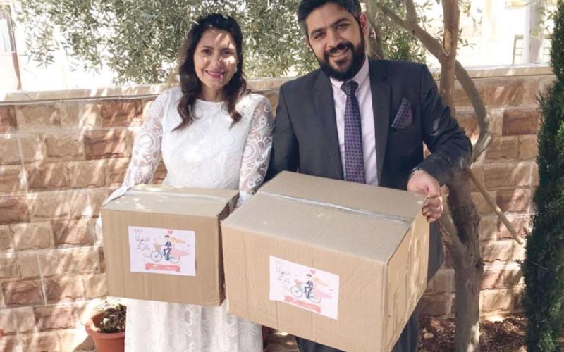 قصة العروسين «أنس بلية» و«حنين رشيد» اللذين تزوجا حديثا في حفل بسيط أقيم في الشارع ومع الأسر المحتاجة مثال لأردنيين احتفلوا بزفافهم بطرق عديدة دون مدعوين تجاوبا مع الظروف التي فرضتها «جائحة كورونا».