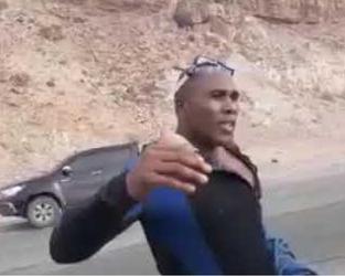 صرح الرجل على شاشة التلفزيون بأنه يحتفظ ببدلته الخاصة بالغطس في سيارته المدنية بالعادة وقف على جانب الطريق وارتدى بزته وركض باتجاه الوحل والصخر والطين على مشارف البحر الميت.
