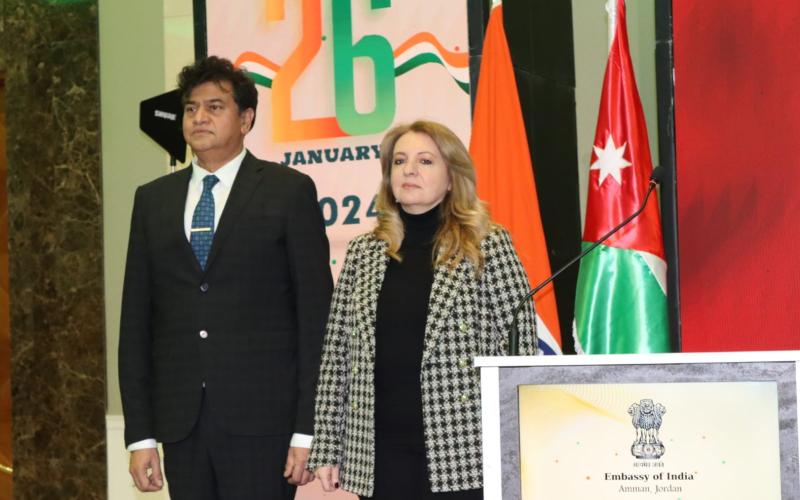 عمان نت - احتفلت السفارة الهندية اليوم الجمعة في الأردن، باليوم الجمهوري الهندي الـ75 ، وتخلل الاحتفال كلمة ا سعادة السفير الهندي "أنور حليم" قال فيها إن هذا اليوم هو يوم عظيم ومميز للهند ، مشيراً إلى ازدهار العلاقة بين الأردن والهند ومتانة الشراكة بين البلدين حول العديد من القضايا،