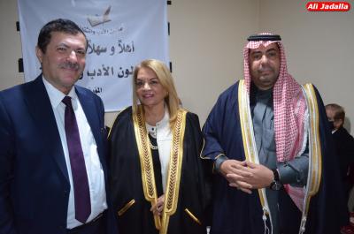 وفي نهاية الاحتفال قام عميد الصالون محمد عواد النعيمات والسيدة سهام الخفش بتقديم الدروع لمستحقيها
