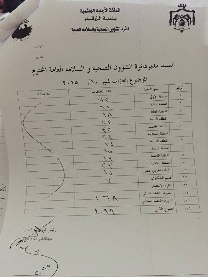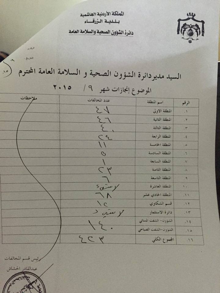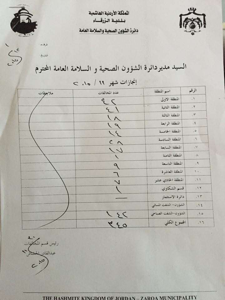 وقال الروسان لـ"هنا الزرقاء" ان المديرية واصلت على مدار العام تكثيف جولاتها الرقابية الهادفة للحفاظ على صحه وسلامة المواطن، من خلال عشرة مراقبين ميدانيين ينشطون على مدار الساعة في احدى عشرة منطقة تابعة للبلدية.
