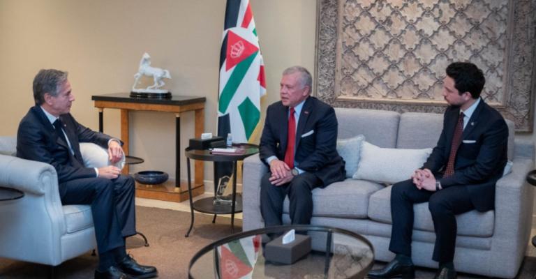 أكد الملك عبدالله الثاني، خلال لقائه وزير الخارجية الأمريكي أنتوني بلينكن، اليوم السبت، ضرورة وقف الحرب على غزة وفرض هدنة إنسانية لاستدامة وصول المساعدات إلى القطاع وضمان عدم إعاقة عمل المنظمات