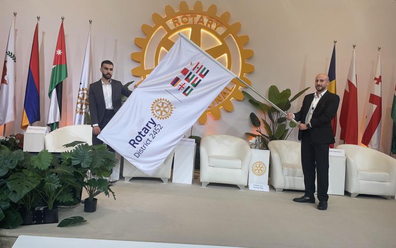 The leadership of the Rotary District 2452 for the coming year was officially handed over Saturday night during a gala dinner at Madaboon. Jordanian District Governor, Bashar Haddad, transferred the governorship to Emirati Hussein Al Jaziri. The next District 2452 conference will be held in Dubai in May 2025.
