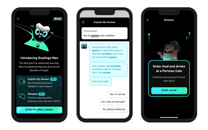 أعلنت شركة (دولينغو) Duolingo، المطورة لتطبيق تعلُّم اللغات الشهير، عن إطلاق دولينغو ماكس Duolingo Max، وهو مستوى جديد للاشتراك يقدم تجارب التعلُّم المدعومة بالذكاء الاصطناعي.